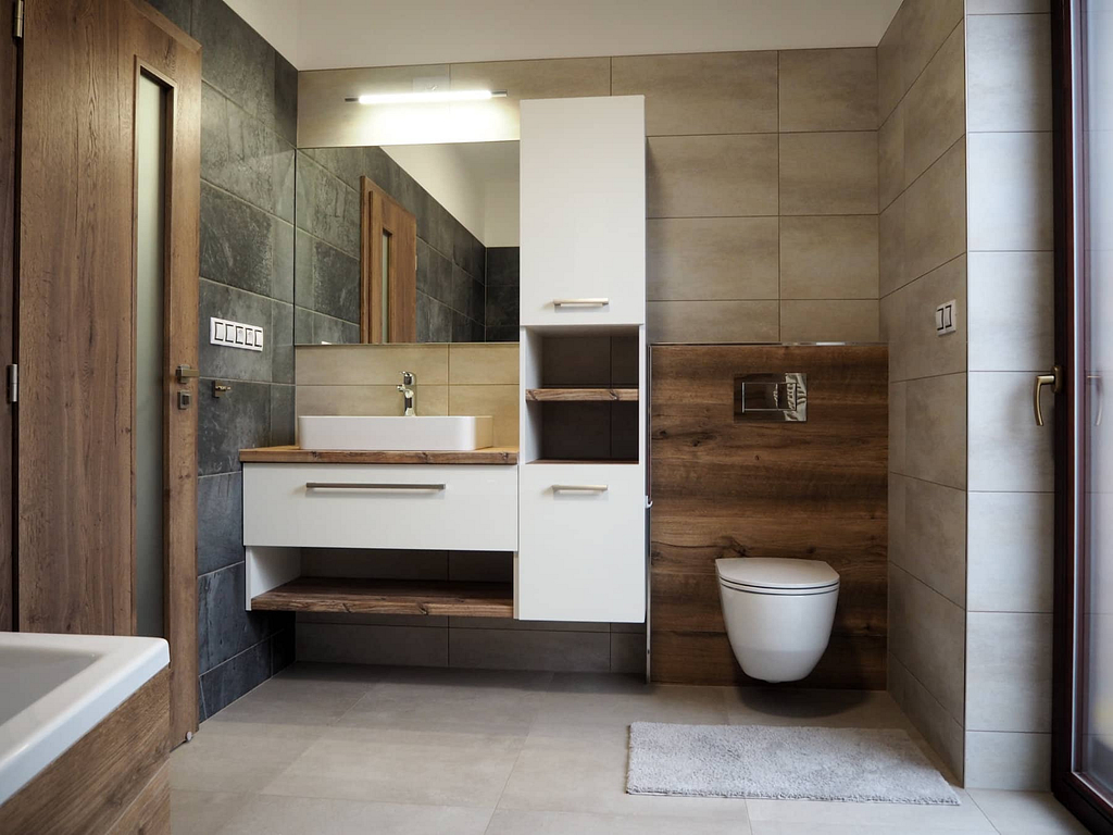 Spolupráce na projektu započala až v pokročilé fázi stavby rodinného domu. Po konzultaci jsem klientům vytvořila návrh koupelny, pomohla s volbou obkladů a odděleného wc, o kterých už měli rámcovou představu a vytvořila jsem vizualizace. Zároveň jsem navrhla skříňku s umyvadlem, která poté ještě prošla menšími úpravami. Nadčasová koupelna je tvořena 3 typy obkladů z prodejny Siko.